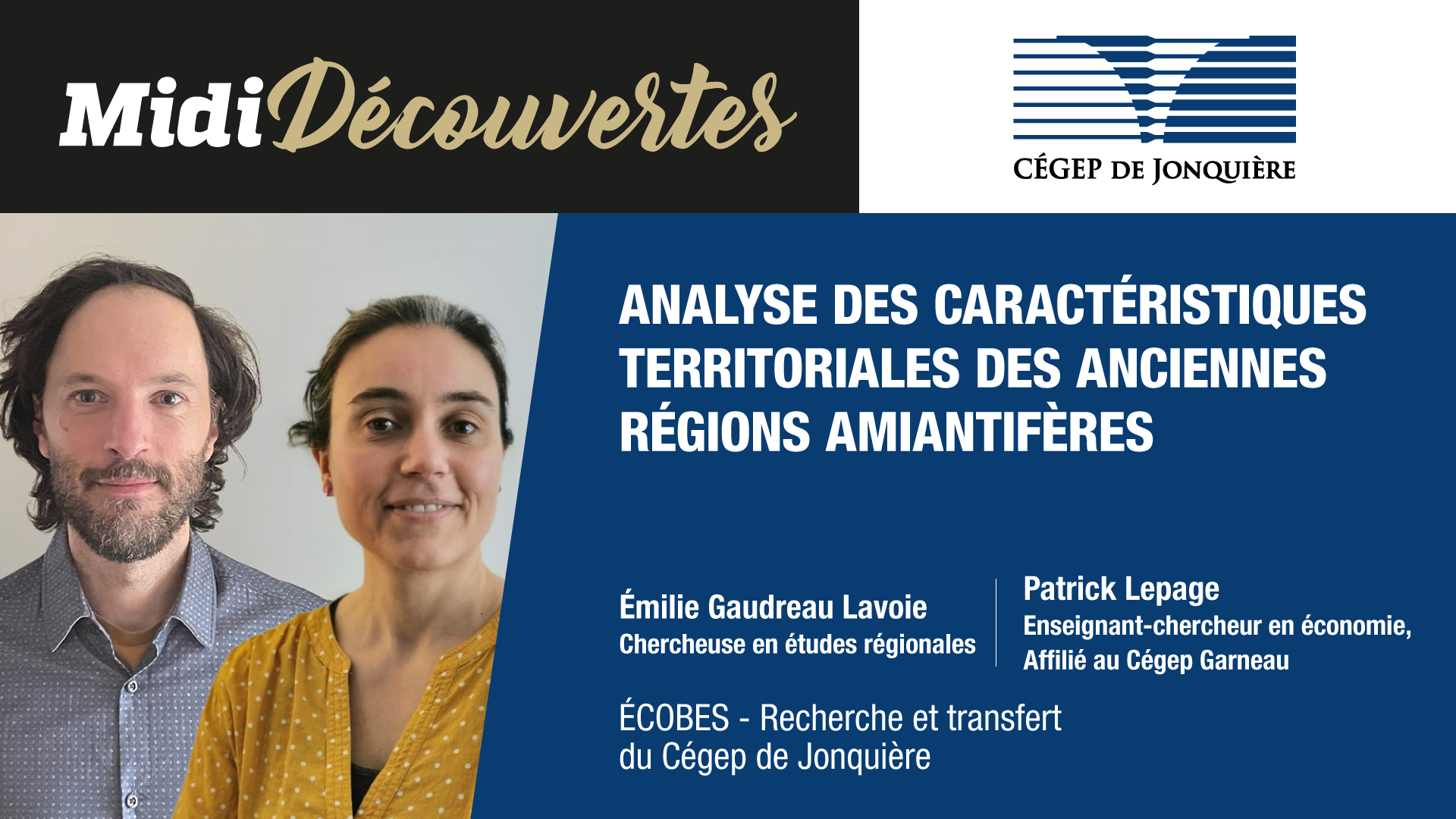 Présenté par Émilie Gaudreau Lavoie, chercheuse en études régionales, ÉCOBES – Recherche et transfert du Cégep de Jonquière et Patrick Lepage, enseignant-chercheur en économie, Affilié au Cégep Garneau, Associé à ÉCOBES – Recherche et transfert du Cégep de Jonquière ce rendez-vous virtuel est à ne pas manquer !